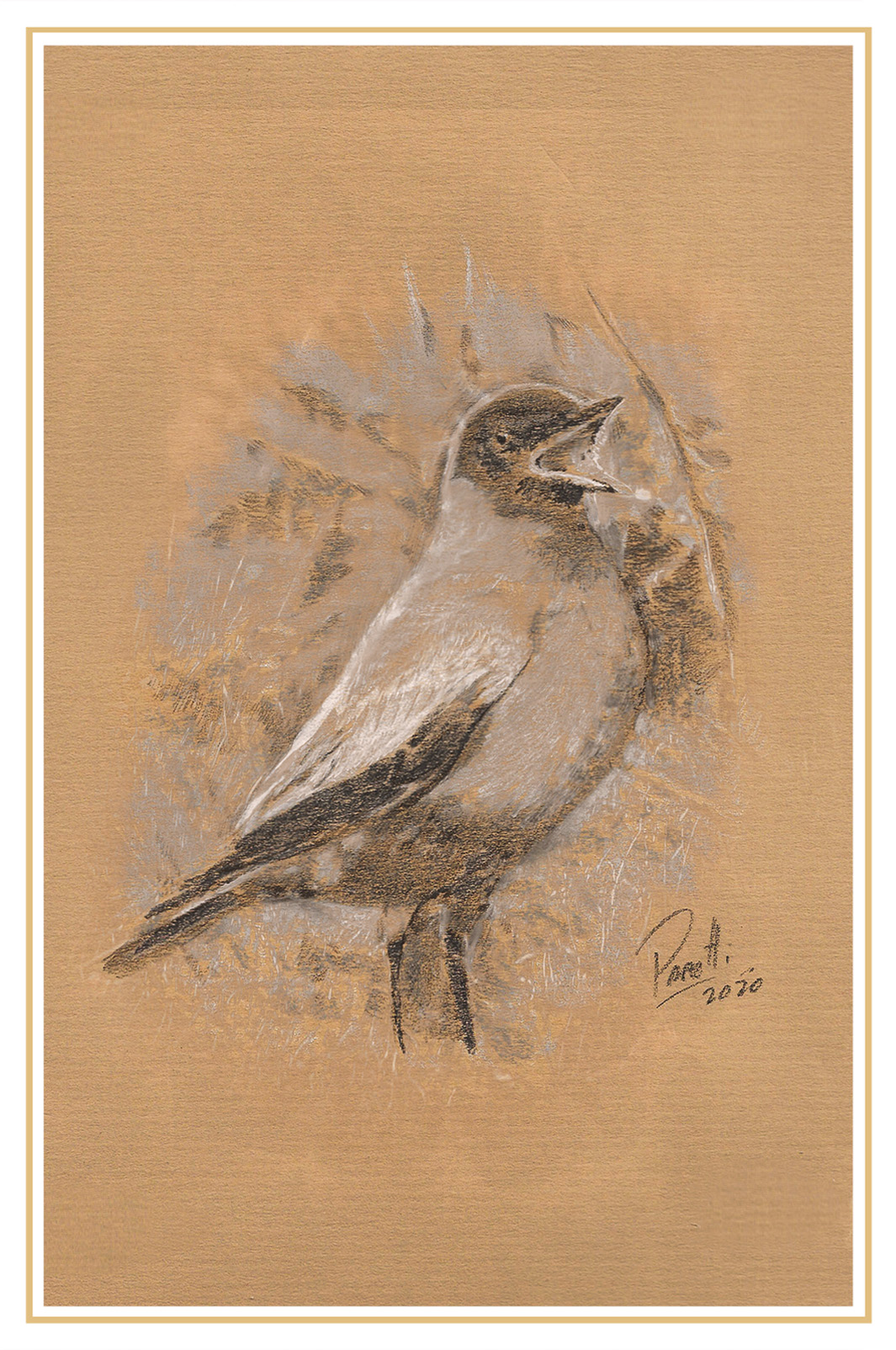 Illustration: Pastel and graphite on textured paper, 15 x 22 cm.